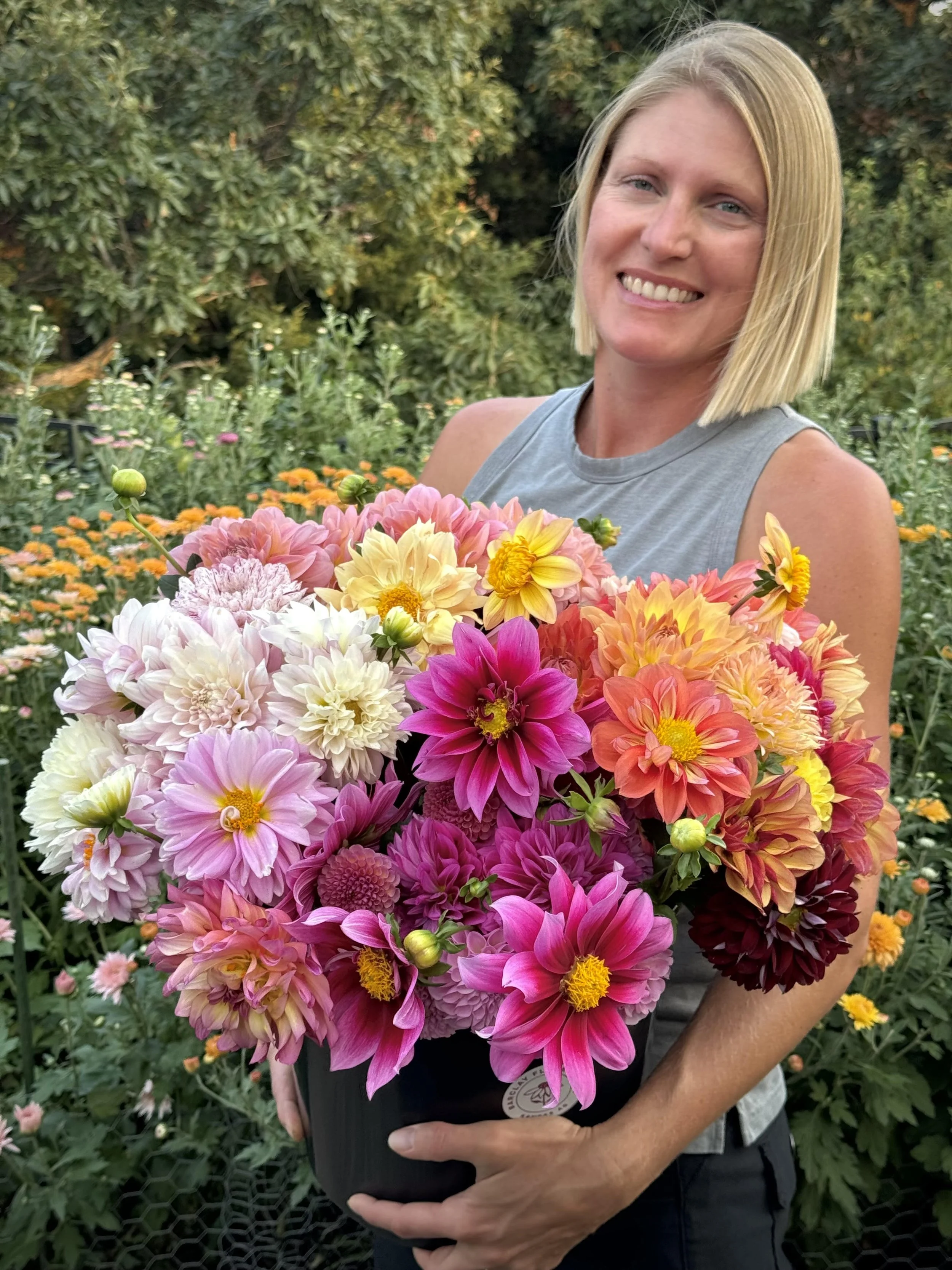Subscriptions are a weekly delivery of a large, robust bouquet of seasonal flowers. Bouquets are a diverse offering of focal and accent flowers, and greenery that vary by season. Bouquets come pre-arranged and are ready to be placed in a vase.