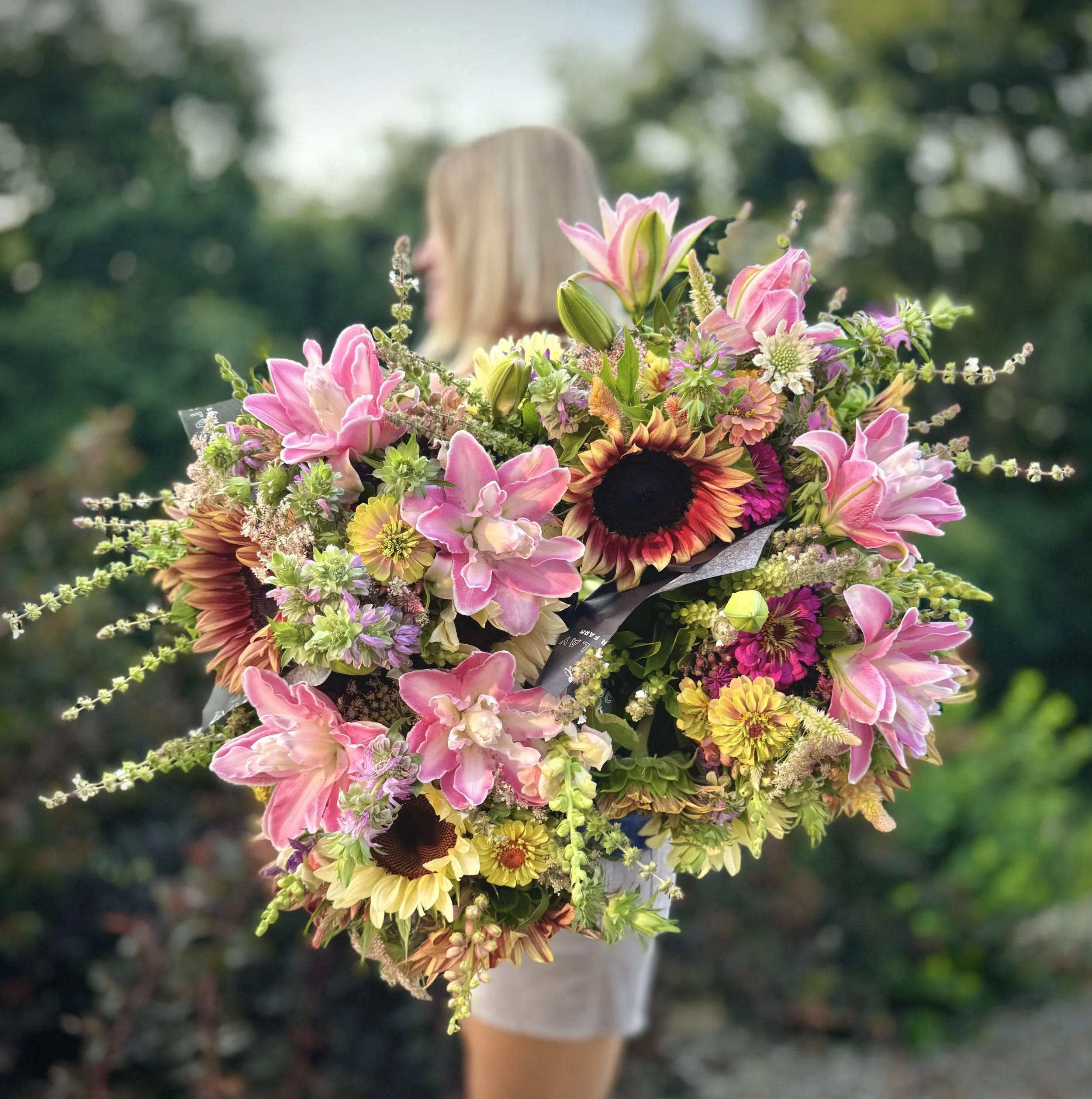 Subscriptions are a weekly delivery of a large, robust bouquet of seasonal flowers. Bouquets are a diverse offering of focal and accent flowers, and greenery that vary by season. Bouquets come pre-arranged and are ready to be placed in a vase.