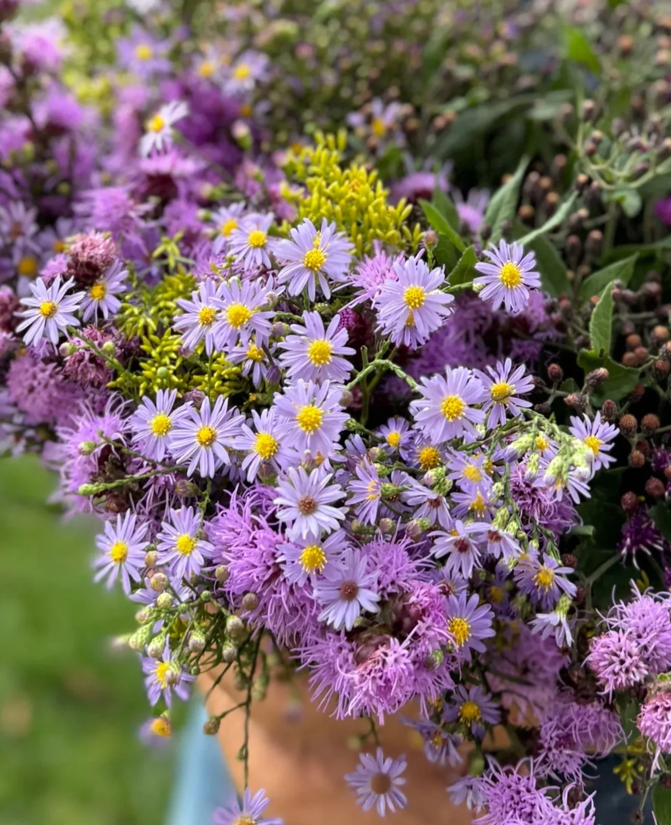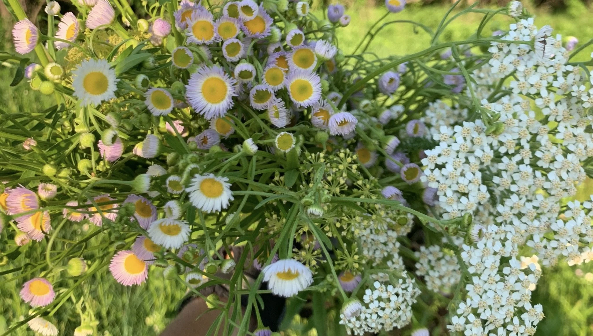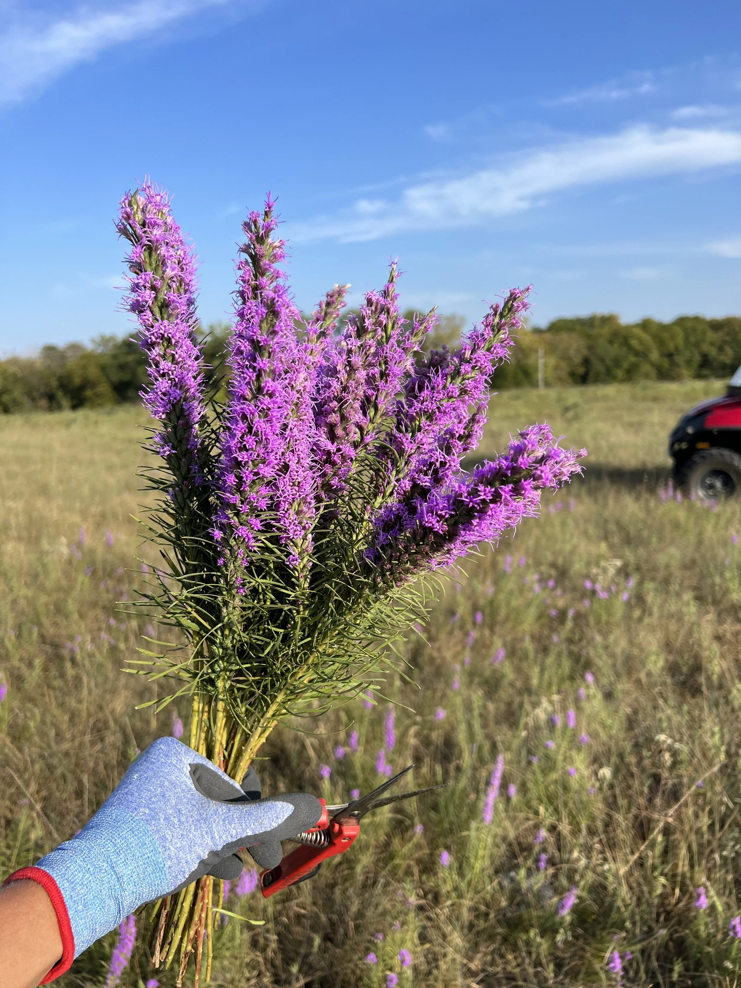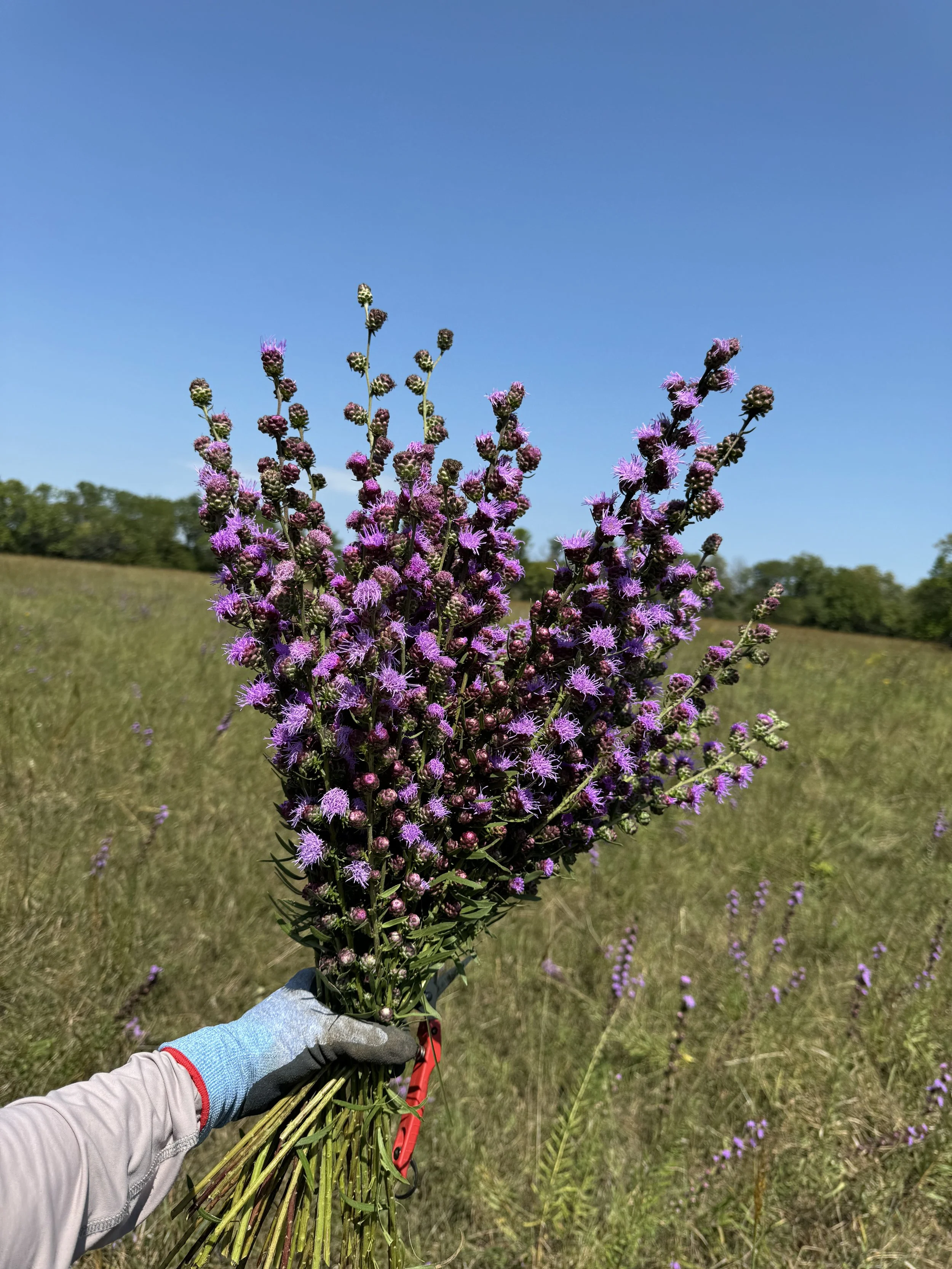 Native Wildflowers. I commonly use these native species to add interest to our bouquets. It is not guaranteed that they will appear every year in our 500 acres of grass meadows, but they show up in most years, depending on the weather and field conditions. Foraging takes a lot of time, like a game of hide-and-seek for flowers while walking through pasture grass; but they are irresistible for the short time in spring or fall when they appear. These species are very important to pollinators, so I’m always careful not to take more than I need.